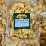 Squeaky Pinconning cheese curds flavored with dill. Ingredients: Milk, Salt, Cheese cultures, dill seasoning, annatto (if colored), and rennet. Contains: Milk